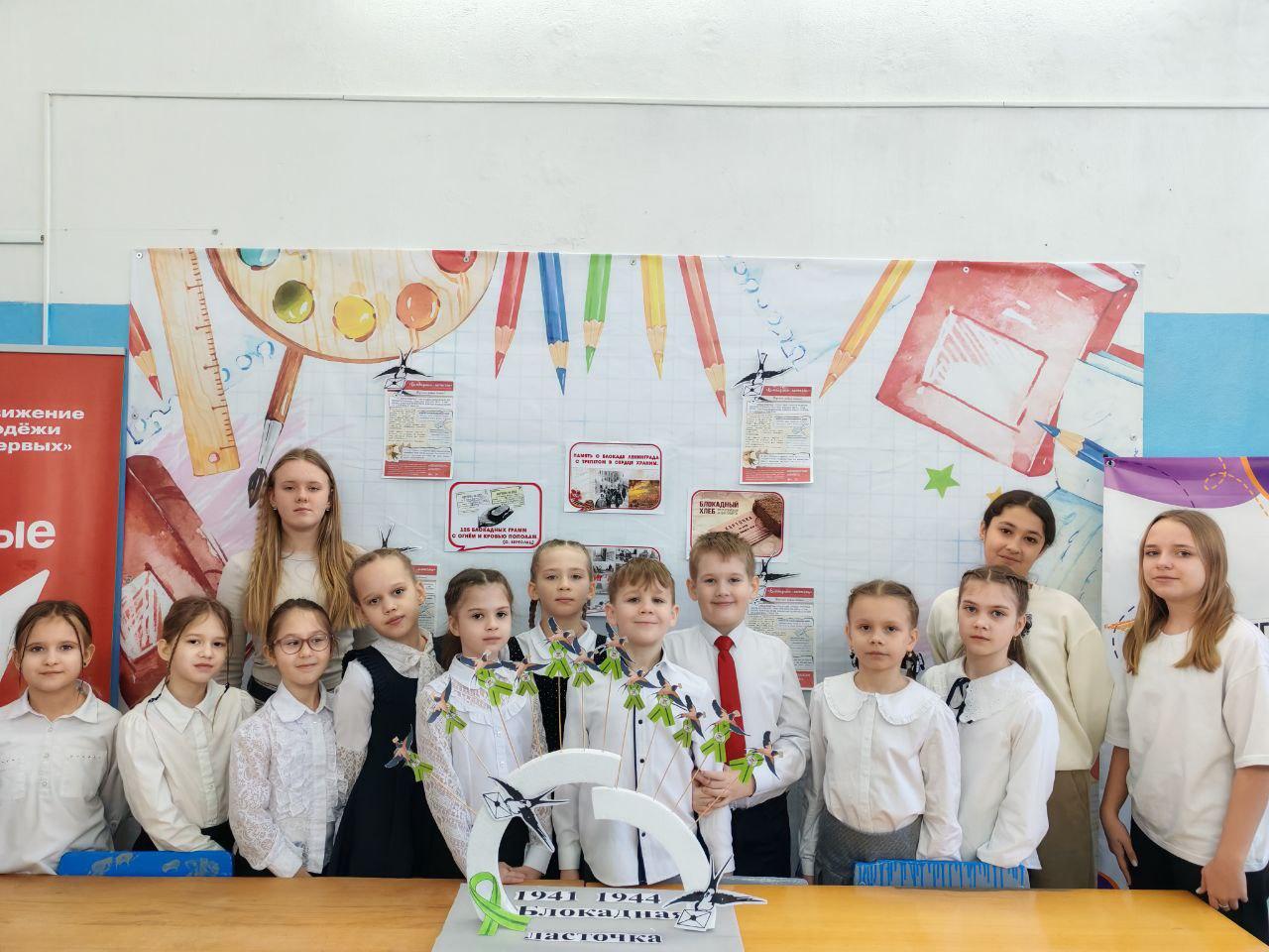 В конце мероприятия учащиеся приняли участие в патриотической акции "Блокадная Ласточка" вместе с активистами ученического самоуправления и Движения Первых.